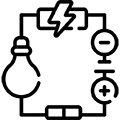 • Instalação de cabos, lâmpadas, luminárias, lustres, tomadas, interruptores, quadros de disjuntores, ventiladores, chuveiros e muito mais