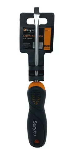 A Chave de Fenda 6x100mm Suryha conta com haste de alta qualidade em material composto de aço cromo vanádio, com alta dureza e longa vida útil. A ponta possui um tratamento magnético para facilitar o aperto do parafuso. O punho é feito de material ABS + TPR, que é muito resistente ao desgaste e corrosão, além de ser ergonomicamente perfeito para a empunhadura.