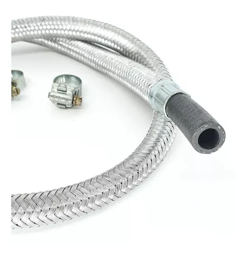 * UM FLEXÍVEL PONTA LISA X PONTA LISA TAMANHO 1,00 METRO MATERIAL BORRACHA NITRÍLICA COM COBERTURA TRANÇADA METÁLICA ENCAIXE PARA BICO DE MANGUEIRA 3/8